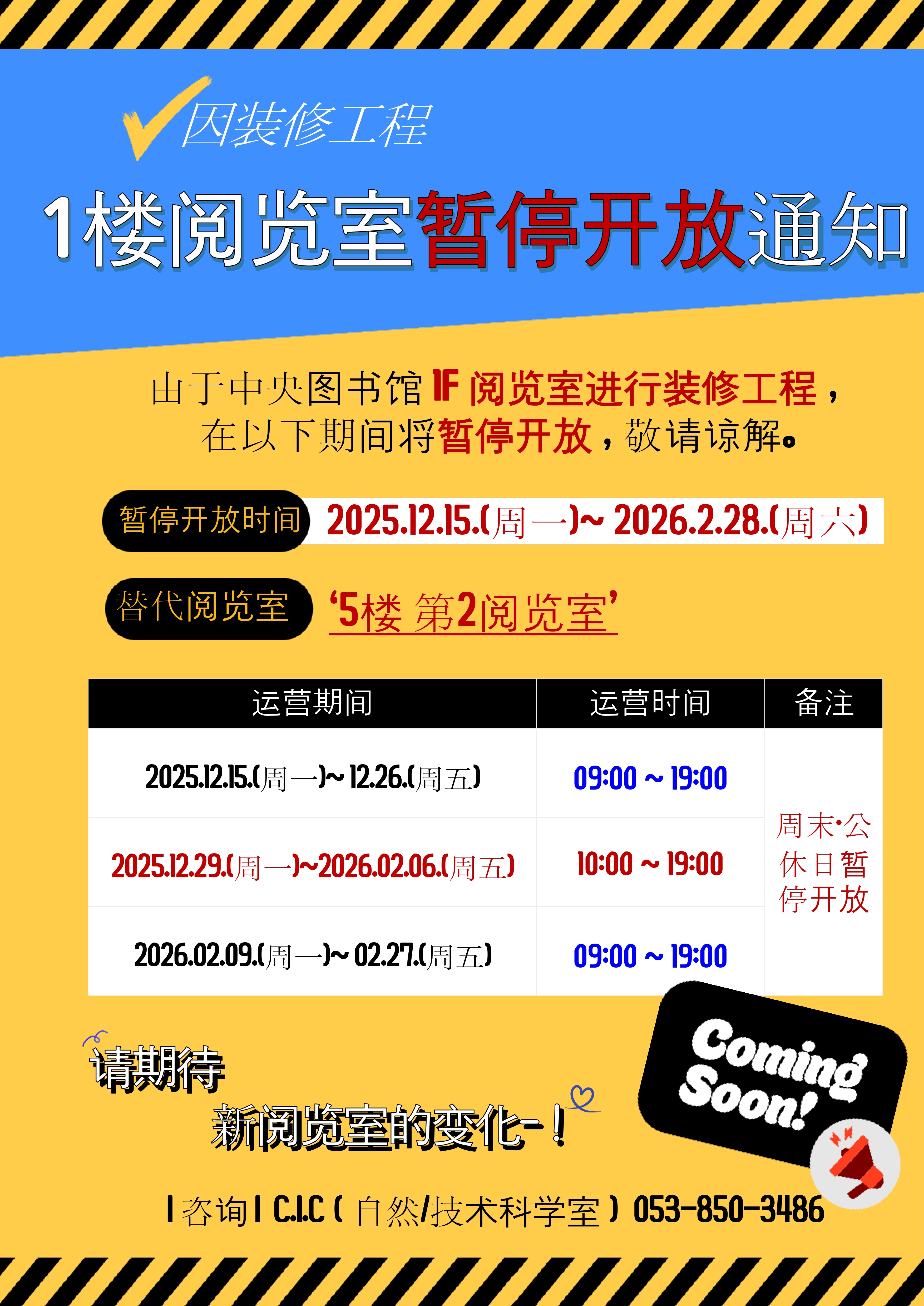 <其他>因装修工程,1楼阅览室暂停开放通知(中文)